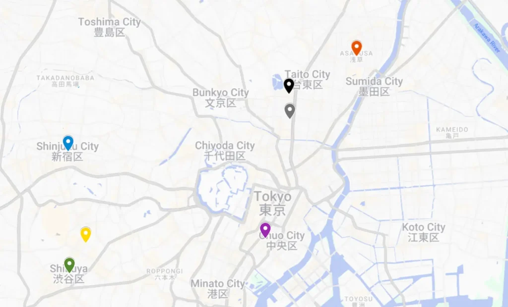 Those are the three areas I’d recommend staying in when you visit Tokyo. They’re all centrally located and well connected to the rest of the city, making it easy to get around. If your trip allows, I’d suggest splitting your stay between Asakusa and either Shinjuku or Shibuya, since Shinjuku and Shibuya are quite close to each other anyway.